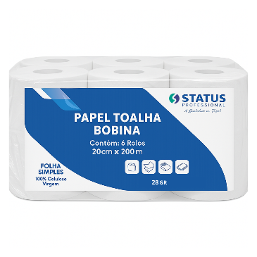 Medidas:20cm x200m, 100% celulose virgem, 28 gr, 6 rolos por fardo